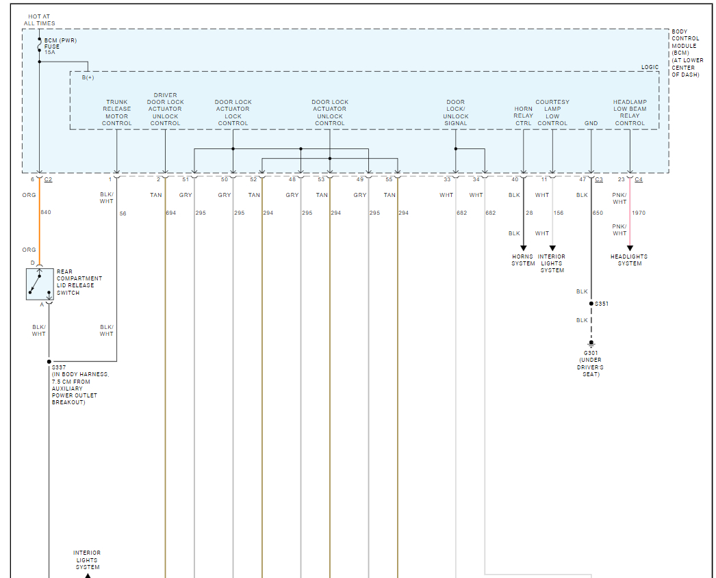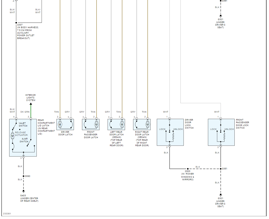 Chances are the switch went bad but to be sure if you ground the white wire off of the driver's side lock switch the doors should lock. Here are the wiring diagrams for the door locks so you can see how the system works. Check out the images (below). Let us know how it goes.
