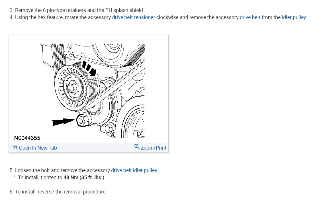 Hello, I want to know if you all have any diagram on how to change an idler pulley on my vehicle listed above.