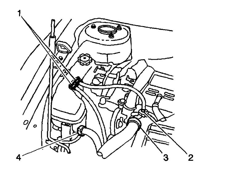 11. Disconnect the surge tank to radiator outlet hose (1).
