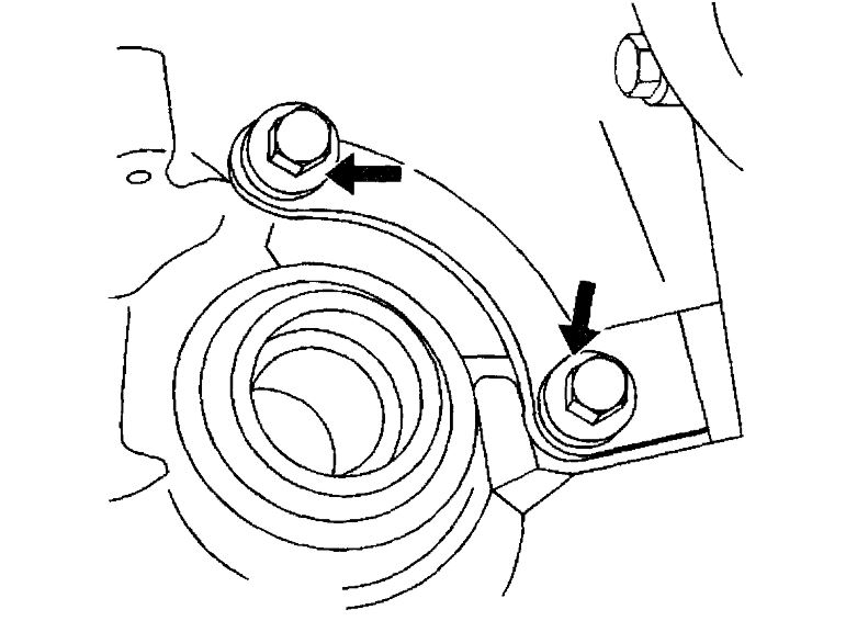 12. Remove the bolt retaining the surge tank outlet hose to the intake manifold.
