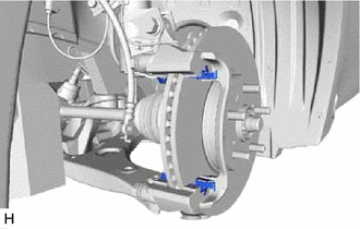 Each front disc brake pad support plate has a different shape. Be sure to put an identification mark on each front disc brake pad support plate so that it can be reinstalled to its original position.