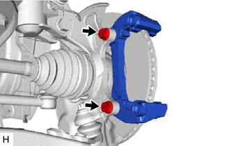 Remove the front No. 1 disc brake cylinder slide pin and front No. 2 disc brake cylinder slide pin from the front disc brake cylinder mounting.