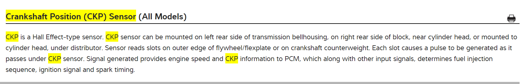 Okay, then you probably have an open or unwanted resistance somewhere in the CKP circuit or the Camshaft Position Sensor (CMP) circuit. In the diagrams down below I have included the CKP and CMP circuit's wiring diagram as well as instructions for finding an open in an electrical circuit. Please go through these guides and get back to us with what you are able to find out. You will need to use a multi-meter, so I have included this link for you below as well if you are unfamiliar with how to use one.