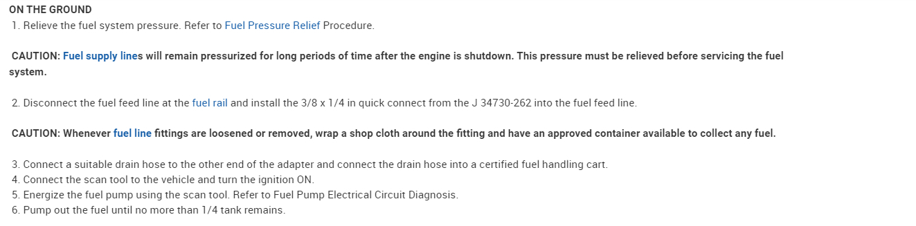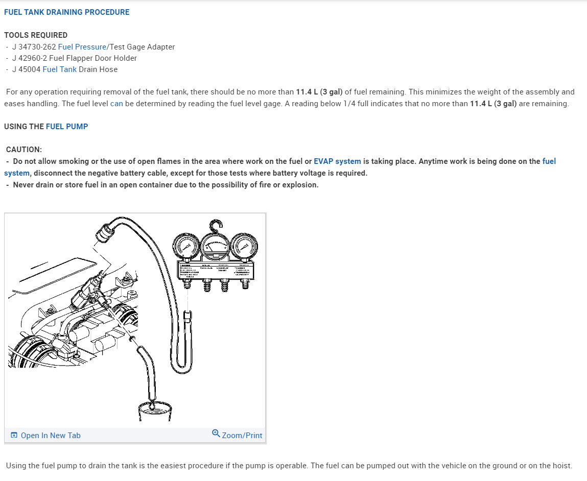 Here is the process for fuel pressure relief and draining the tank. And then pretty much all the service information on this fuel system and operations. I don't see any access to the fuel pump assembly, so it looks like the tank needs to be dropped.