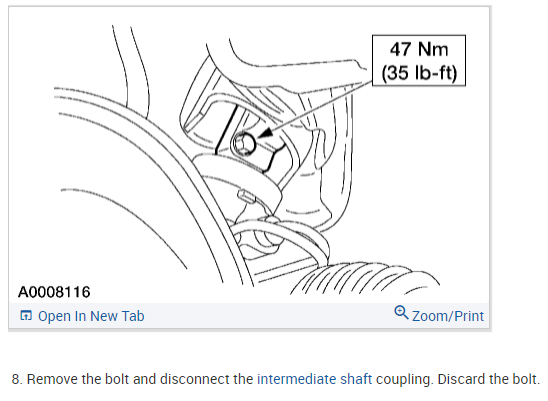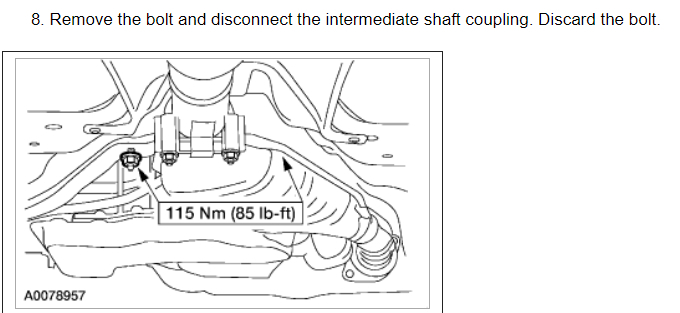 7.Remove the bolt and disconnect the intermediate shaft coupling. DISCARD the bolt.