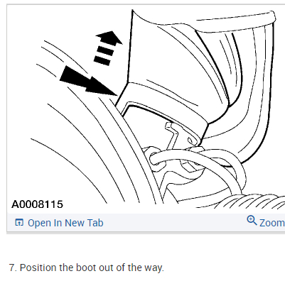 5.Loosen the fittings and disconnect the hoses. . 6.Position the boot out of the way..