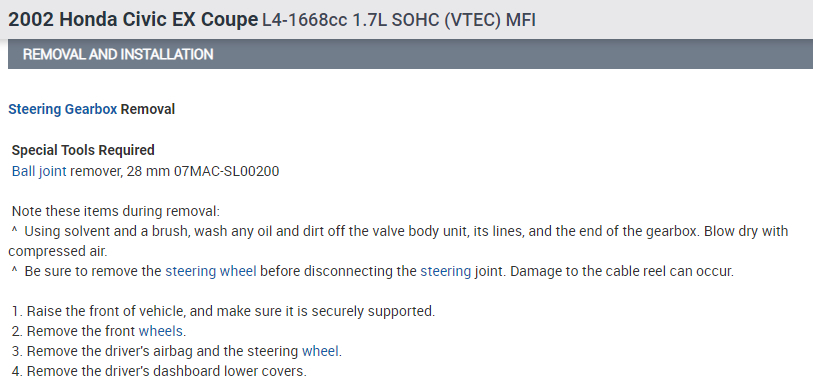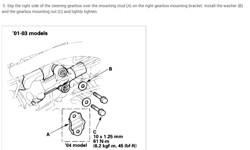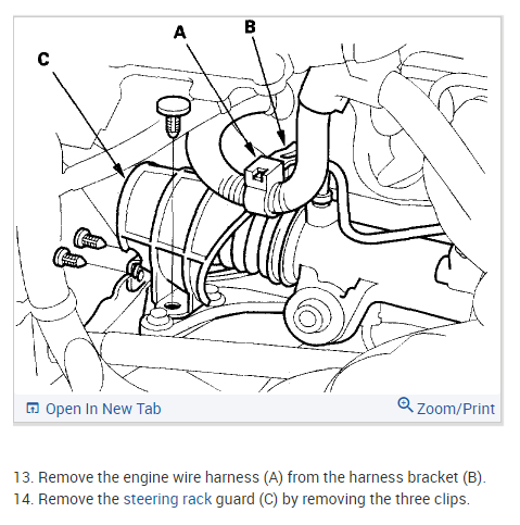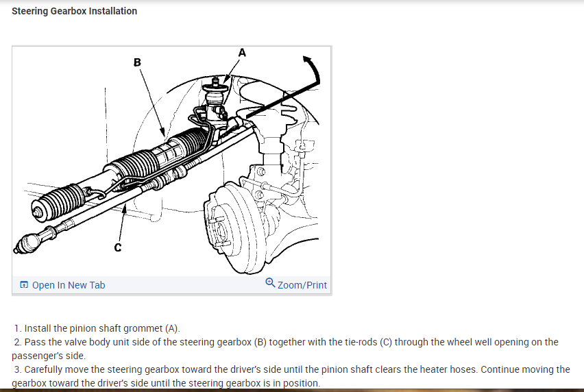 Here is the information you requested. I've attached picture steps below on how to remove and replace the power rack and pinion steering component on your Honda. After performing the repair just be sure to cycle the steering wheel side to side full lock after adding power steering fluid to get rid of any air from the system. This may take a few minutes. Be sure to use Honda brand power steering fluid and do not use ATF-automatic transmission fluid. Hope this helps and let us know if you have any further questions on this issue. Thanks for using 2CarPros.
