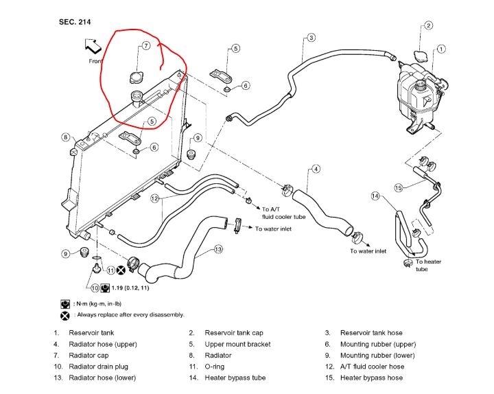 When I park the vehicle and turn off the engine the coolant dumps out. I'm not sure, but I think it's dumping from the reservoir tank because the leaked coolant is sort of under that area. Weird but I replaced the reservoir tank cap last week and with my research I found that having the wrong cap can cause overheating issues. I replaced the cap today with a looser fitting one and my vehicle didn't overheat according to my temperature gauge but when I park it still dumps the coolant; and I noticed that there is a faint odor of coolant in the cabin. I replaced both the upper and lower radiators hoses the other day. I did not replace the thermostat because, from what I could see of it anyway, it looked pretty new. (I just bought the SUV via private sale 3 weeks ago.) I also checked the two 'ports' where the transmission cooling hoses(?) go into the radiator and found no evidence of leaking. When filling the radiator and reservoir I have not noticed any leaks there either.