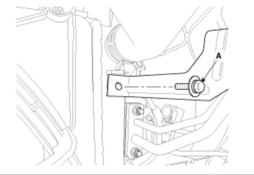 12. Remove the A/C high pressure pipe bracket mounting bracket (A).