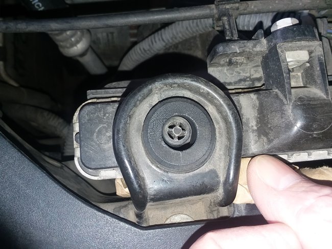 Sorry if I didn't respond quick enough to the other post. Thanks for the picture. That should just be a socket. If I remember it is an 18 mm but I could be wrong. You just put the socket in the opening that you are showing and then move it around until it seats on the bolt. That rubber should move around until it allows it on the bolt.
