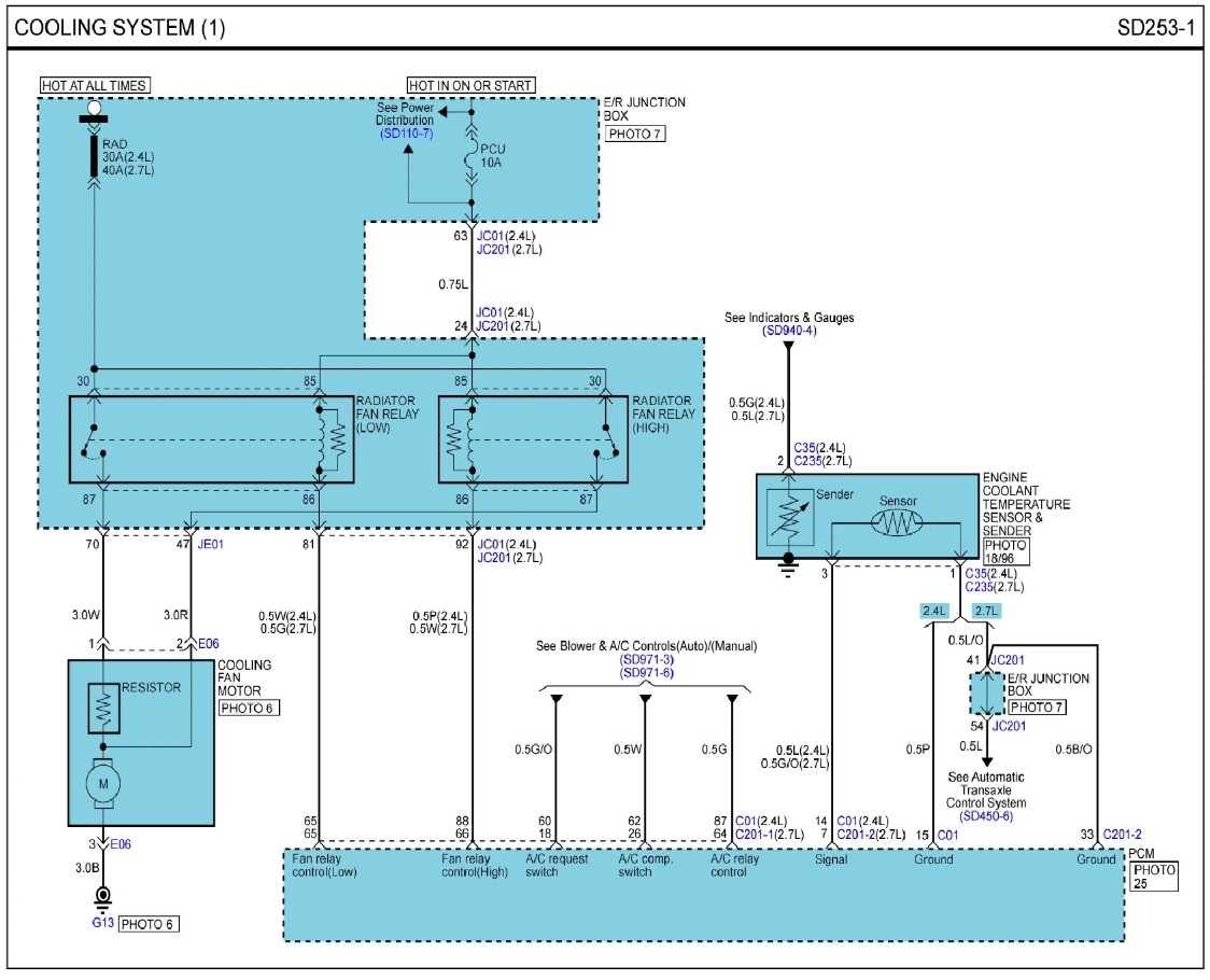The cooling fan of the vehicle is not functioning. Could I have the wire diagram of the cooling system?