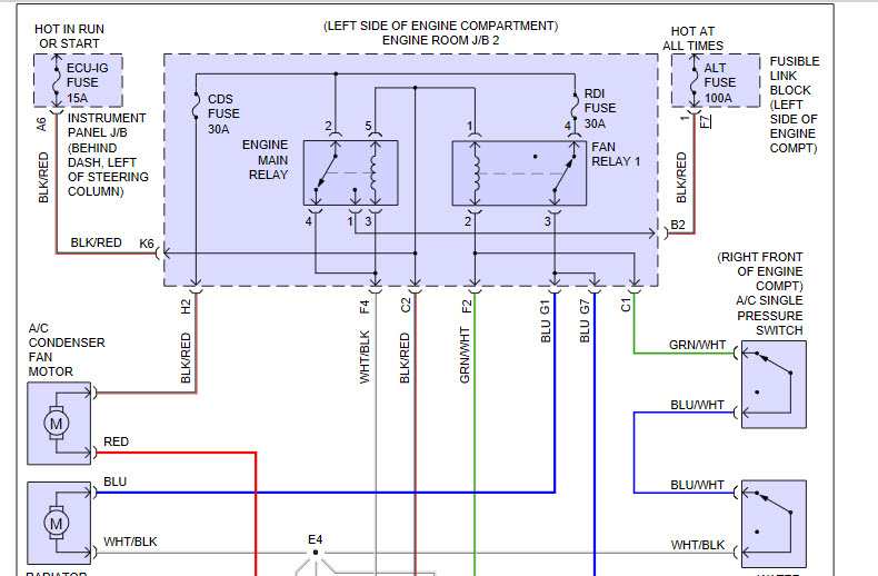 There are three different fan relays. I attached the schematic you requested. Take a look through it and let me know if you have questions. Note: I had to cut the pic in half to make it readable. I did, however, overlap it so you can easily follow it.