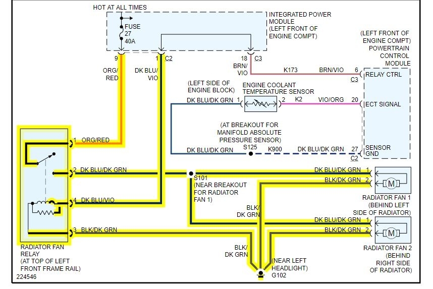 I have a friend who asks me to fix the radiator fan on her van. I was told the vehicle had the radiator replaced after hitting a deer 8 months prior and that the vehicle was overheating at low speeds and while idling. So after inspecting the vehicle I noticed that the reservoir was completely out of fluid, I noticed a small amount of fluid close to the water pump. the water pump was fine and it turned out to be a hose clamp that was loose that was the cause of the coolant leak. I fixed the clamp and put fluid in . I also tested fan motors and the both work. My question is, at what point will the fan be censored to turn on? will the fan even operate it operate at normal temperature. Any advice is appreciated. Thank you. in the meantime I will be testing the relay.