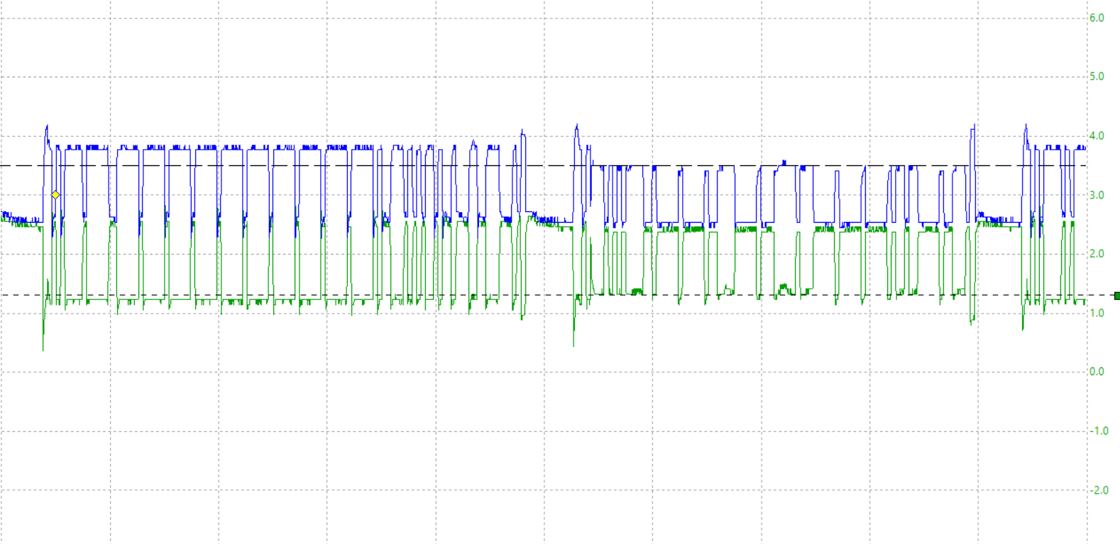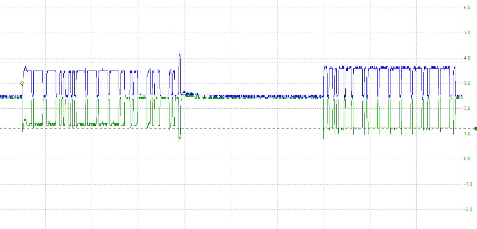waveforms 4,5,6 you can see I started to measure the voltage levels of each message packet, this is how you can tell the different modules talking on the network, some modules will have slightly different voltage levels depending on the wiring to that module or the distance from the data link connector, also any possible corrosion in connectors, But Can bus is a very robust 2 wire network and will still be able to transmit even with some wiring issues. Which is why this vehicle still running fine and still does, but it's obvious there's some wiring issues somewhere. In some cases, you will see much more obvious slopes in the waveform, or a waveform that is completely distorted.