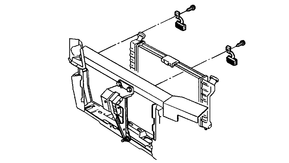 9. Disconnect the transaxle oil cooler lines from the radiator. Refer to Automatic Transmission Oil Cooler Pipes Replacement in Transmission and Drivetrain.