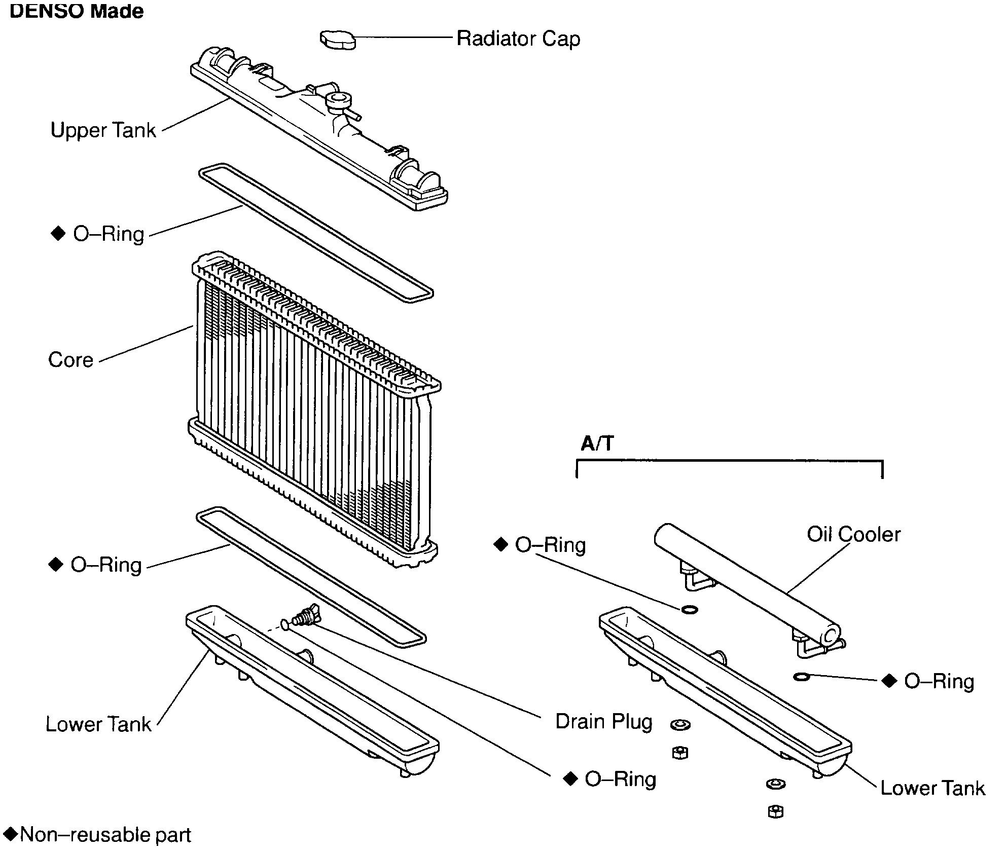 5. A/T (DENSO Made): REMOVE OIL COOLER FROM LOWER TANK