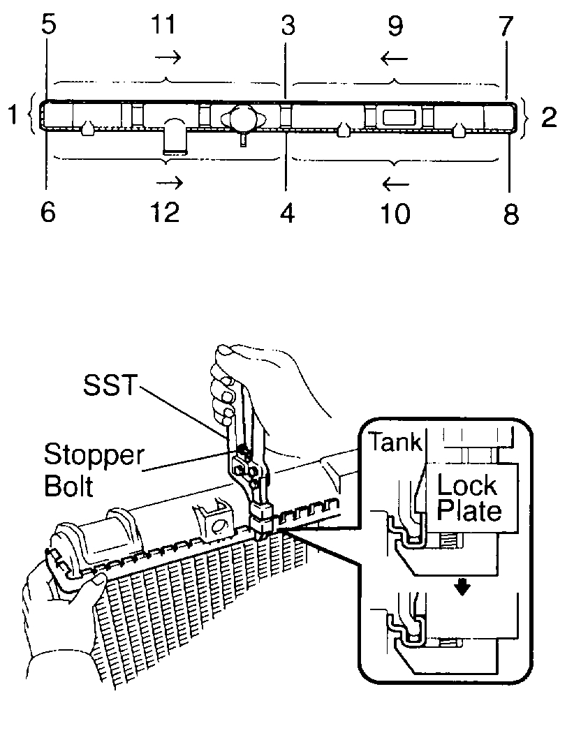 a. Lightly press SST against the lock plate in the order shown in the illustration. After repeating this a few times, stopped by the stopped plate.
