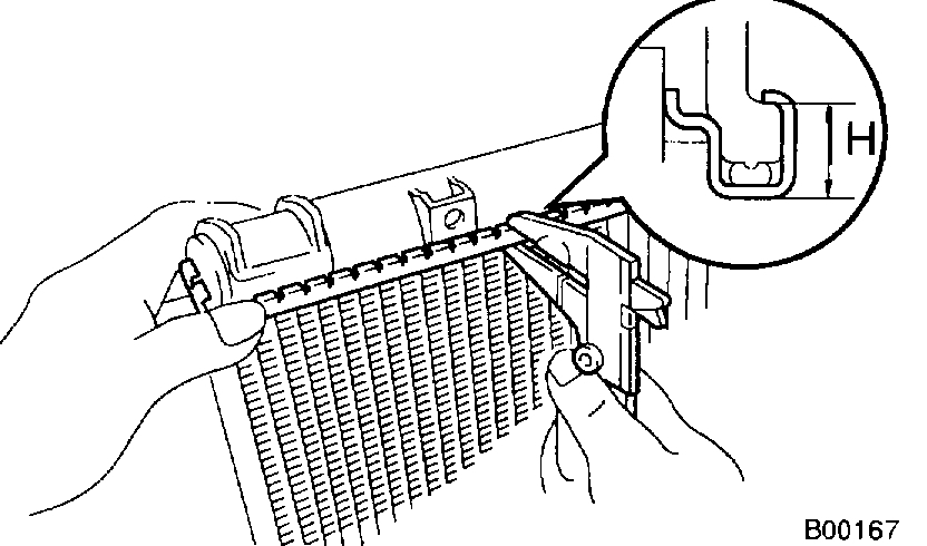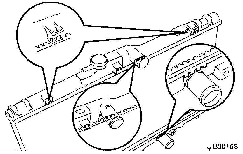 b. Attach the 2 lower radiator supports on the radiator to the body brackets.