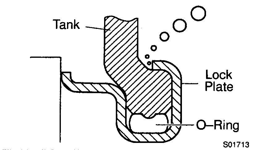 ^ If the sides of the lock plate groove are deformed, reassembly of the tank will be impossible.