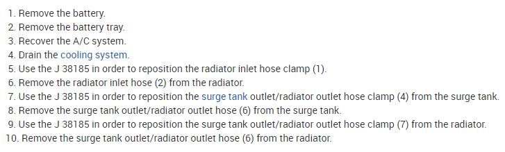 I removed the battery, and all plastic coverings that would prevent access. I have successfully drained all coolant out of the radiator (the petcock would not come out so i had to remove the hoses) then I removed the lines that went in to the radiator.