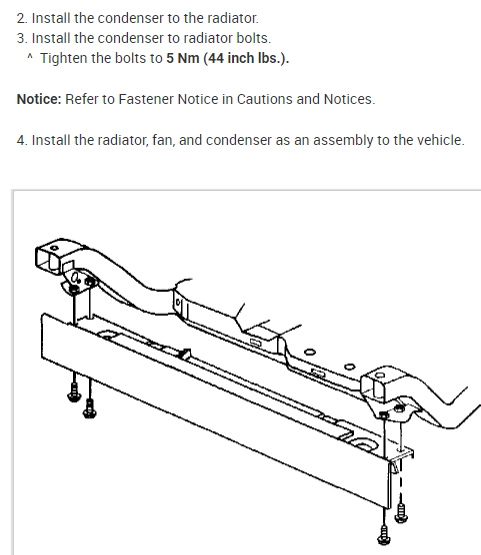 Next was the fans then radiator. My problem is that I am having difficulty getting my A/C condenser and radiator to get close enough to attach the bolts that go into the condenser that connects to the radiator a long with the plastic front cover.