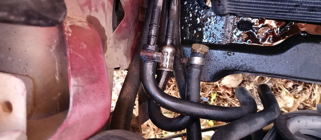The lower oil coolant line i think that's what it is. Not the larger coolant hose. I guess it's time for another radiator. Besides it's going up for sale. it's got me burning mad. A money pit.