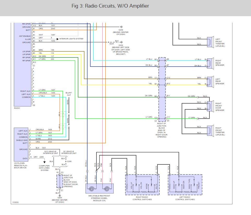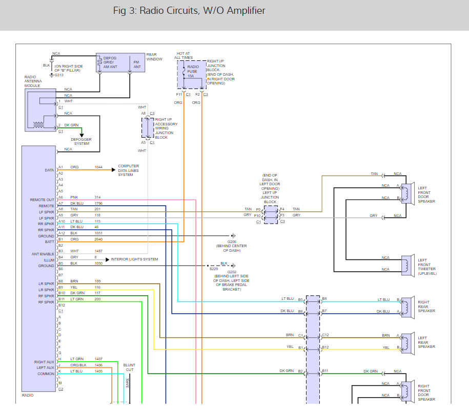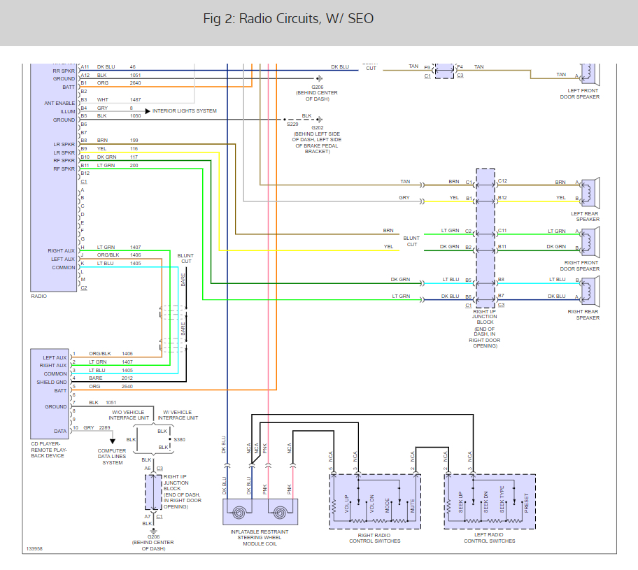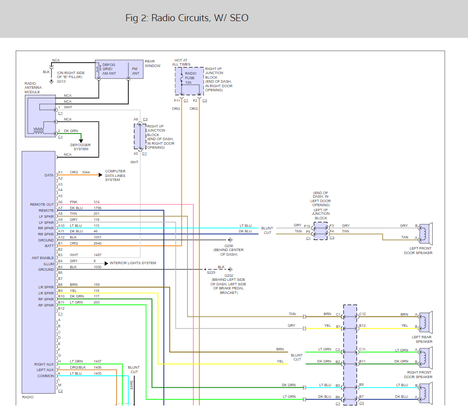 When installing the aftermarket radio did you cut any wires or change the harness? Here is a guide to help you check the wiring and the radio wiring diagrams below so you can see how the system works. Does this unit have an amplifier?
