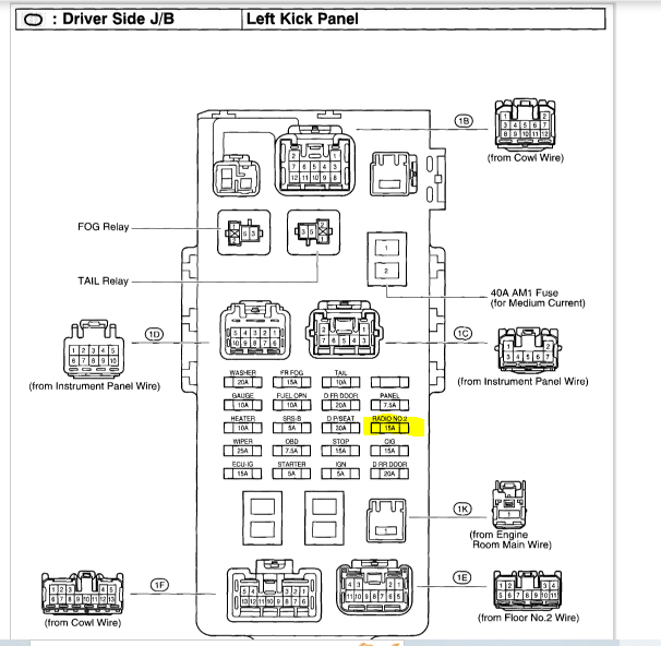 See pics below. Note: The last three pics are to help locate the different fuses. They have radio and dome lamp fuses all over the place. LOL