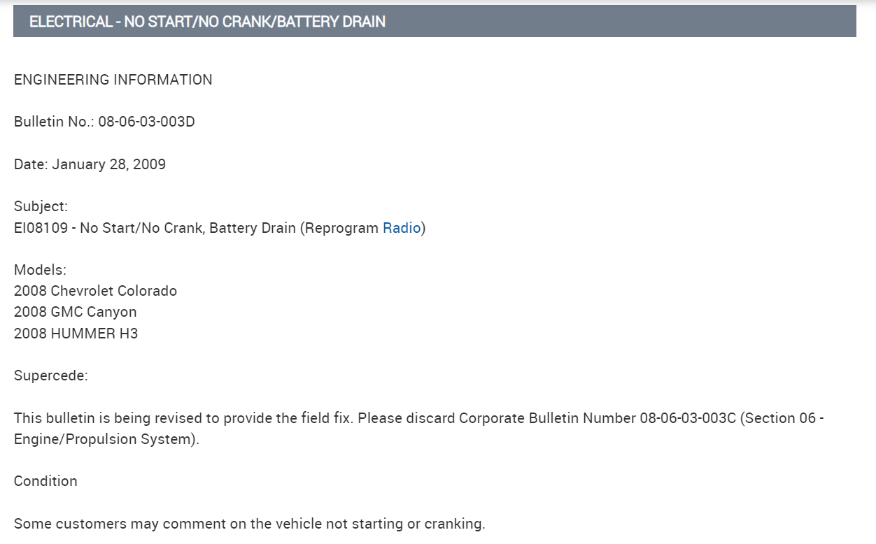 Note: There is a Technical Service Bulletin on this exact issue, I will post it below, so this is a known problem with this model vehicle.