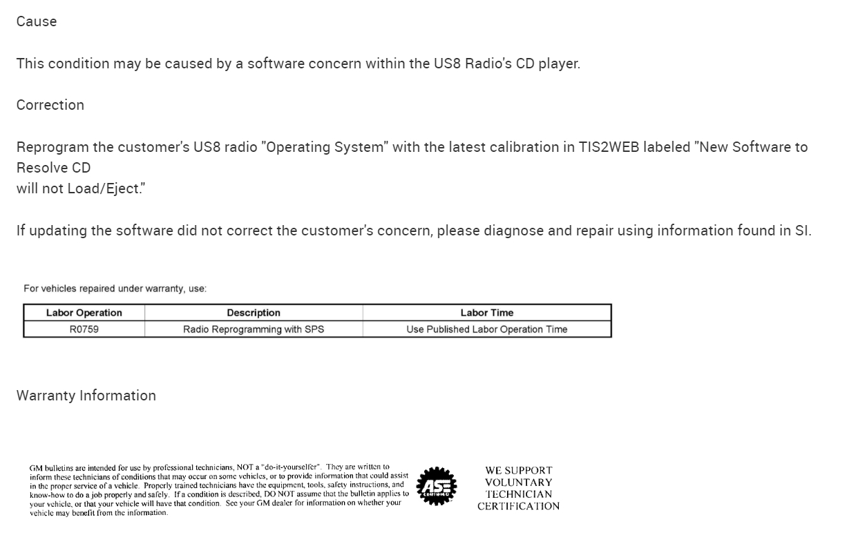Okay, there are actually 2 TSBs for this issue, one has to do with having the Radio reprogrammed if it is not an aftermarket radio, Ill post that one first, it is pages 1 and 2 below.
