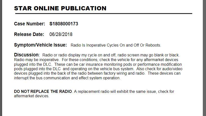 when it's cold out the radio will not come on until it warms up. sometimes stays off all day . During the summer months it's fine . Ongoing issue for 3 years had warranty radio replaced now since out of warranty Chrysler is denying claim and will do nothing.