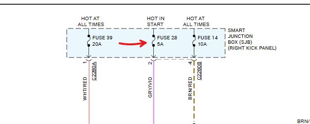 Okay, you may have a SJB that is out but to be sure lets use this guide to check for power on both sides of the fuses# 39 14 with the key off. Next, test fuse # 28 the same way when the key is in the crank position. These fuses are in the fuse panel at the right kick panel inside the car.