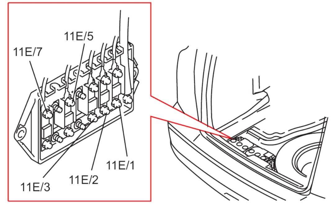 it's in thetrunk by the battery sorry. the pic doesn t show E4 but in a chart it does.