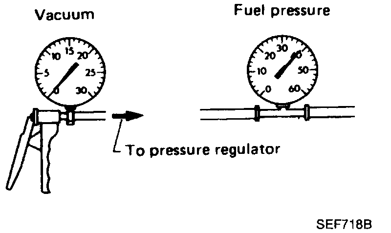 8. Start engine and read indication of fuel pressure gauge as vacuum is changed.