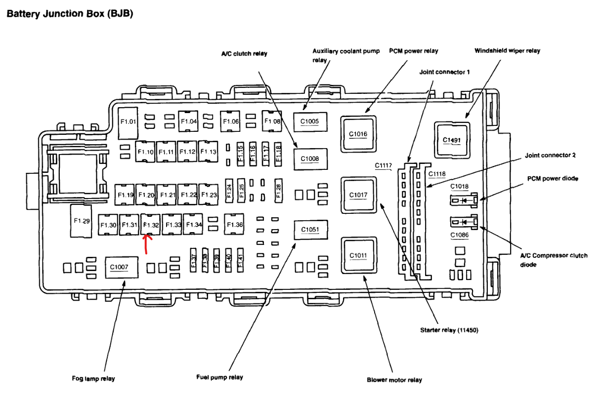 The first thing we need to do is check the fuse #f1-32 on the left side of the engine compartment which runs the rear blower motor. Here is a guide to help and the fuse location below: