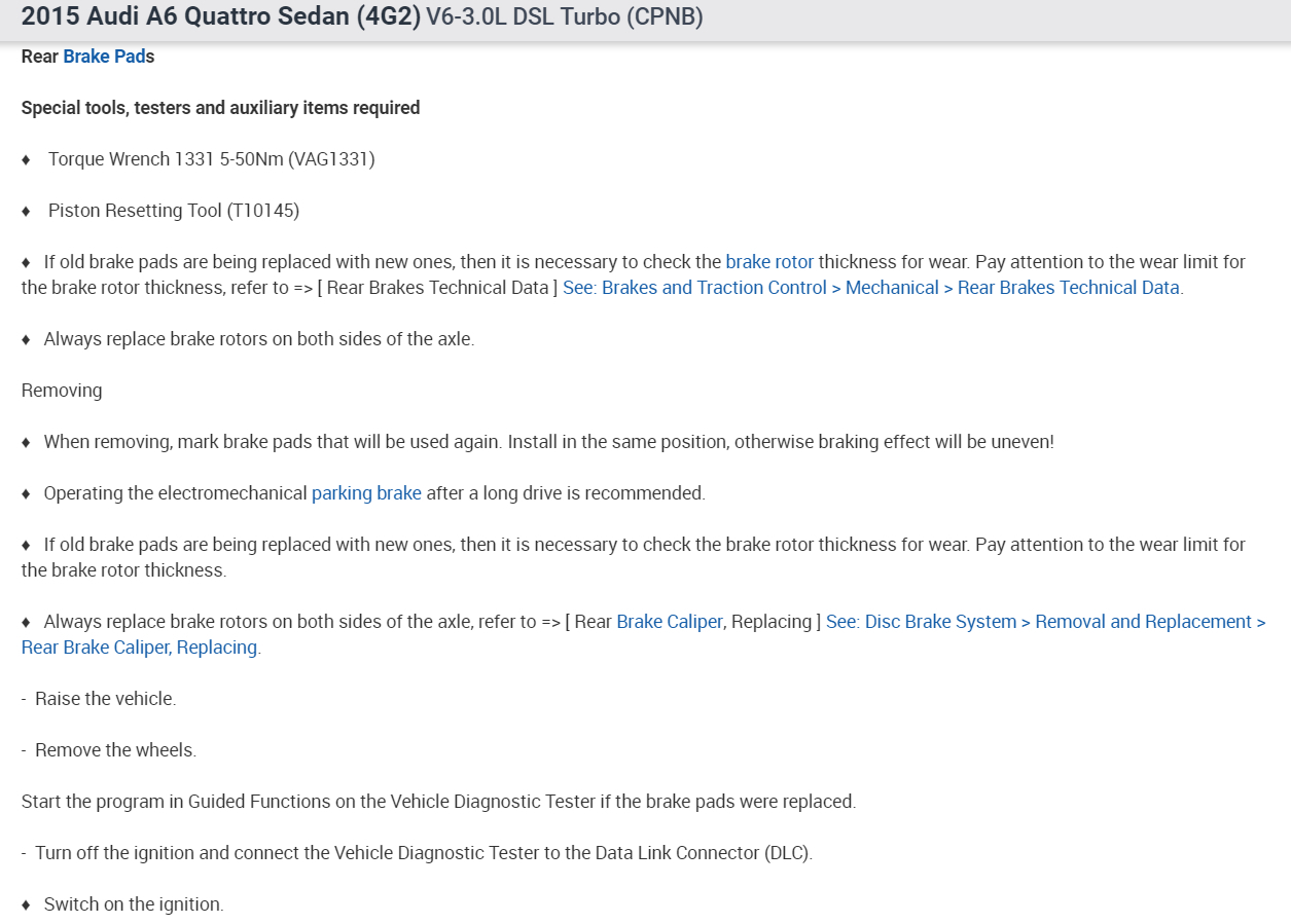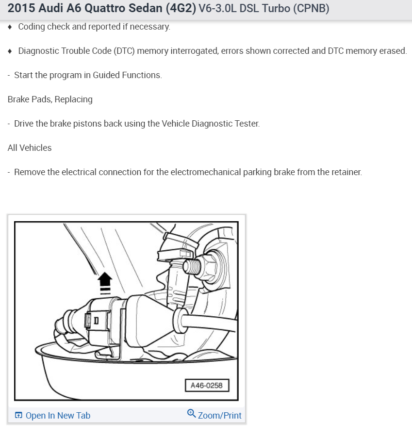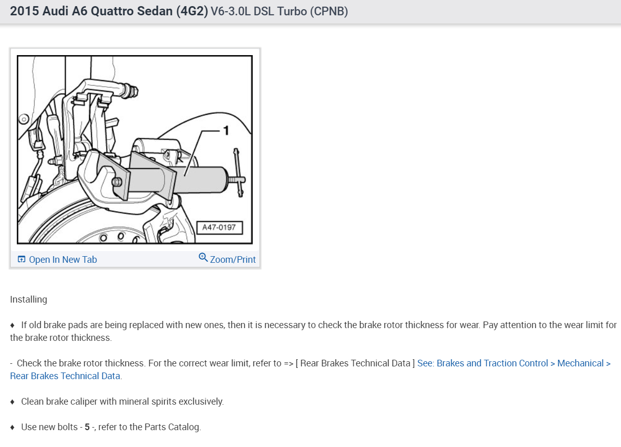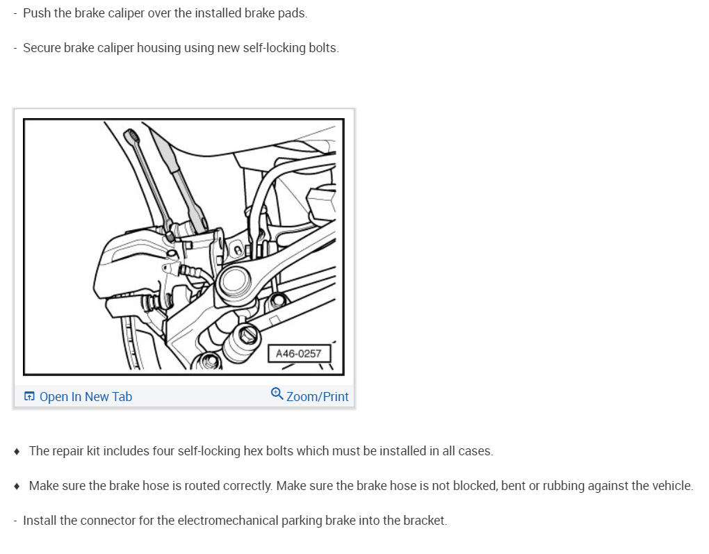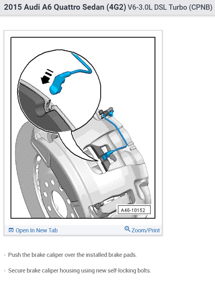 You must remove the electronic parking brake motor from the caliper before you retract the caliper. Here are the diagrams and instructions to do the complete rear brake job. (Below)