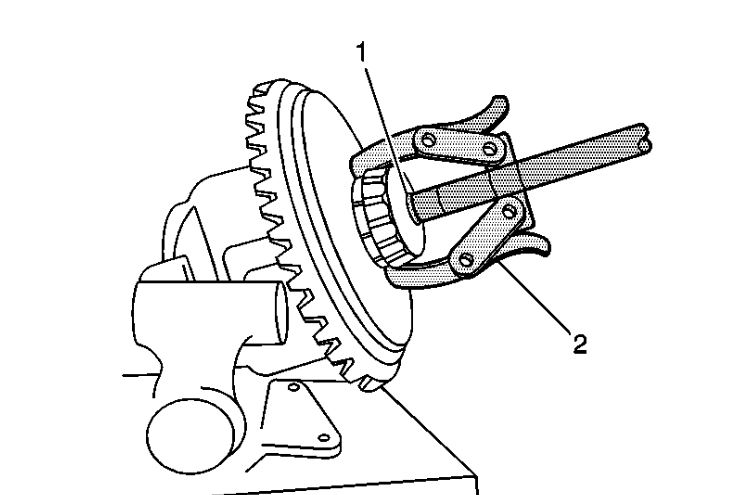 1. Remove the differential side bearings by performing the following steps: