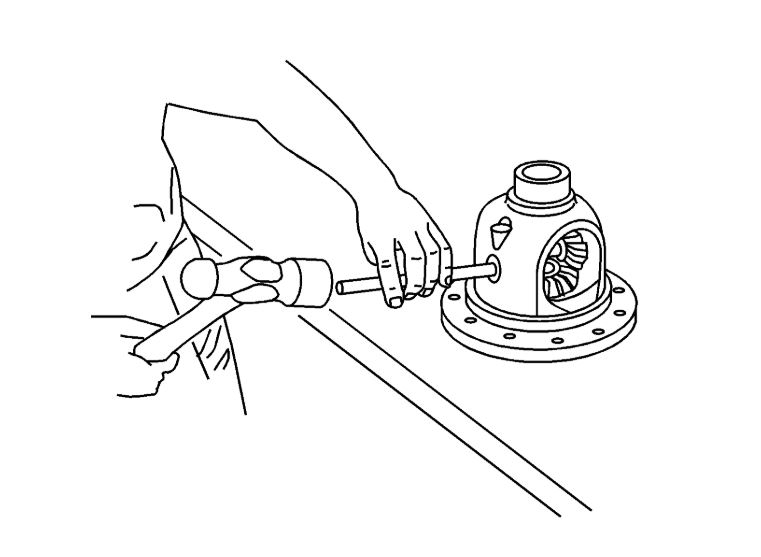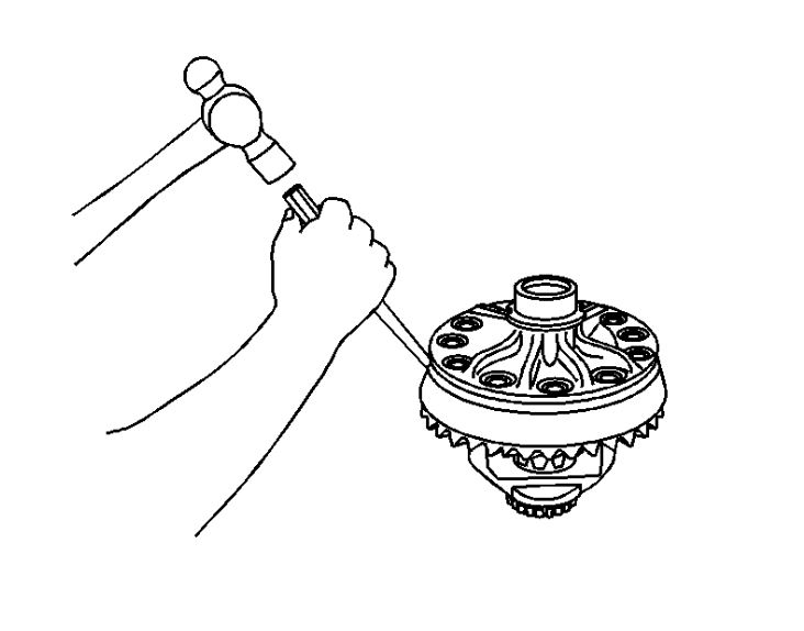 2. Drive the pinion shaft through the differential case using a hammer and the brass drift.