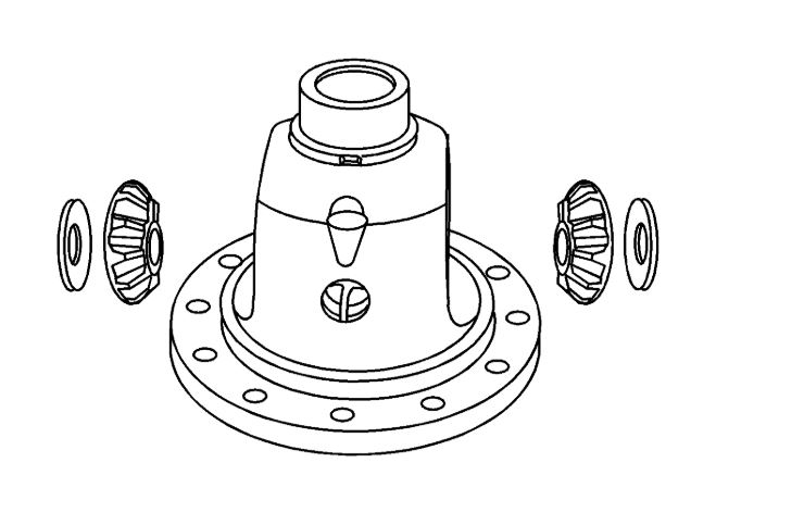 4. Install the differential side gears and thrust washers into the differential case.If the same differential side gears and the thrust washers are being used, install the gears and the thrust washers to their original locations.