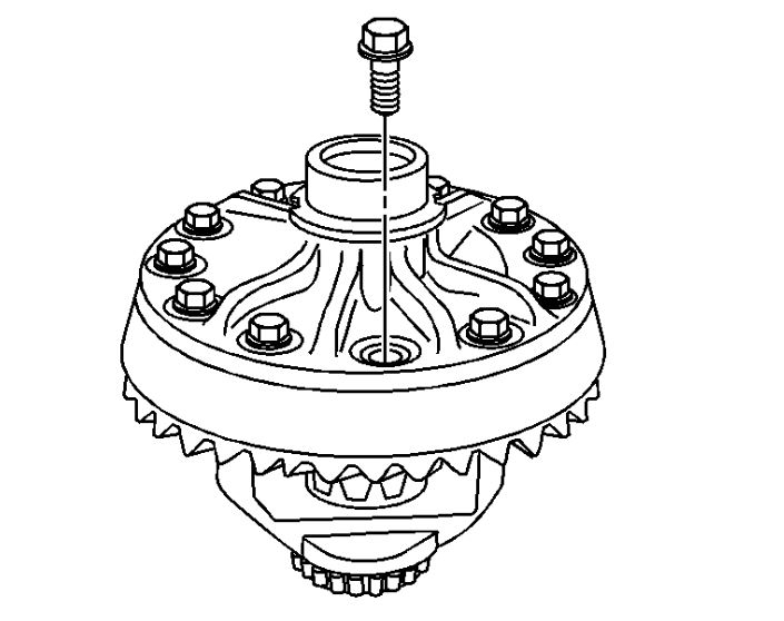 Tighten the bolts alternately and in stages, gradually pulling the ring gear onto the differential case.