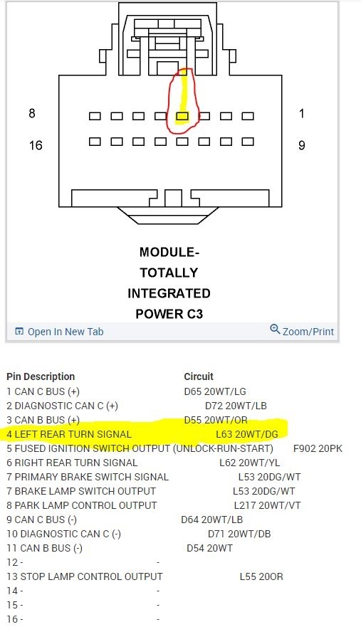 Okay, that was why I asked, wasn't sure if both hazards were out or not. In this case the issue is going to be internal to the TIPM, but before you condemn that part I would go to the wiring harness at the TIPM and find connector 3 on it and the White wire with dark green stripe at pin 4 in that connector and verify that there is no activity there when you turn on that lamp. If there is none then the internal controller in the TIPM has failed and it isn't a replaceable piece, you need to replace the complete TIPM box. These are a common failure item on Chryslers unfortunately and because of the way they control most of the electronics get replaced a lot for things like loss of a turn signal, horn, high beams, and other issues. There are places that rebuild them as well.