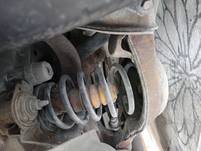 In the pic you attached, I'm not sure if you are referring to the coil spring, a broken shock, the bumper, or something different. See the pics below for part names.