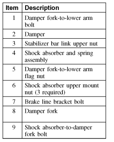 Now, it appears the shock itself has come off or broken off or has come apart. Before we get started, you really need to be careful when you are working with a coil spring. When they are no longer held in, they can shoot out with a lot of force. Since this is a strut assembly, you will need a spring compressor. Most parts stores will lend one to you.
