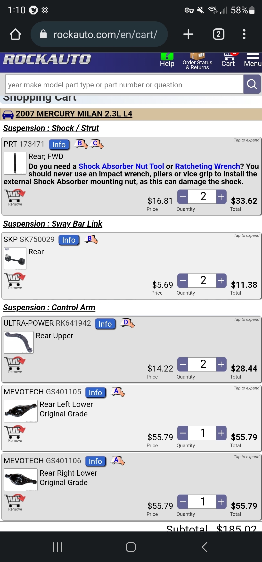 Also, I strongly recommend replacing both left and right at the same time. Otherwise, handling will be affected.