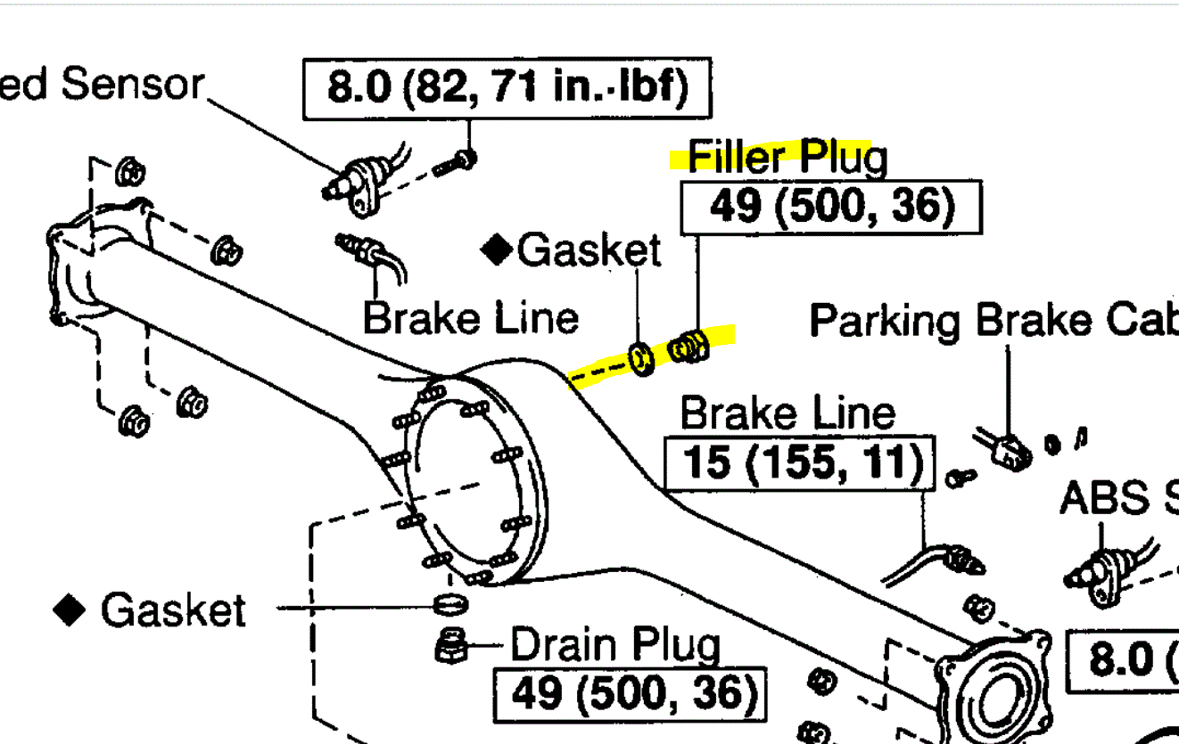 A howling noise is usually the result of a bad bearing. Now, it could be a few different ones. Is the mileage correct that you listed? Have you checked the fluid level? If you look at pic 1 below, I highlighted the fill plug. Remove it and the gear lube should be even with the bottom of the opening in the fill plug.