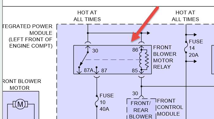 Quick question, where is the relay for the front blower motor? I only see a rear blower motor relay K9. The rear blower is working right now.