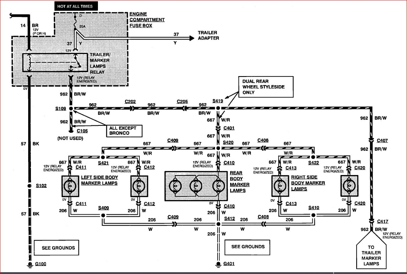 I attached a few links that will help you diagnose this. The diagram I attached is of the rear marker lamps which is what I think you are referring to when you say rear running lights. However, in the event you mean the rear tail lamp assemblies, I attached that diagram as well.