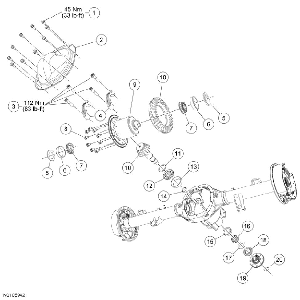 15. Install the differential carrier. For additional information, refer to Differential Carrier See: Differential Assembly > Removal and Replacement > Differential Carrier.