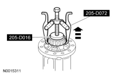 7. Using the Bearing Puller and a suitable press, remove the inner pinion bearing.