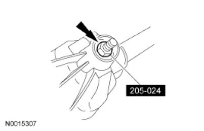 2. Tighten the Drive Pinion Bearing Cup Installer to seat the pinion bearing cups in their bores.